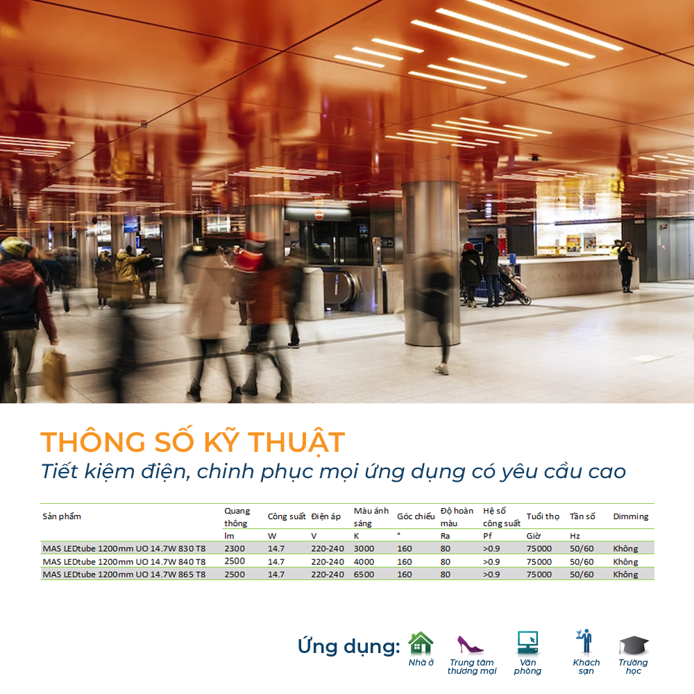 - Đèn Master LED tube T8 thay thế trực tiếp cho đèn huỳnh quang T8