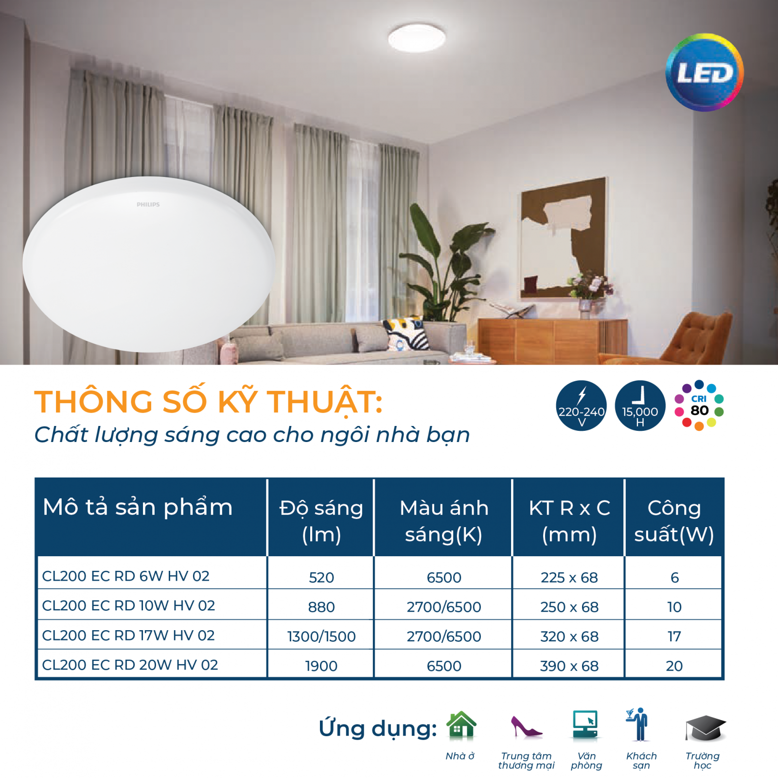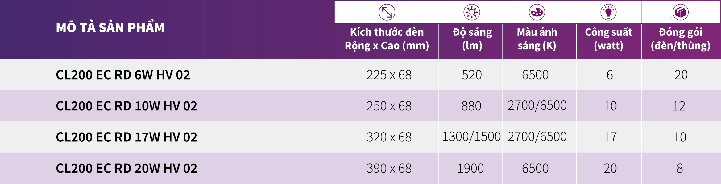 Đèn này phù hợp cho nhiều ứng dụng khác nhau như trong nhà ở, cửa hàng, văn phòng, khách sạn, và trường học. Với thiết kế đẹp và hiệu suất cao, CL200 là lựa chọn phù hợp cho nhiều không gian.